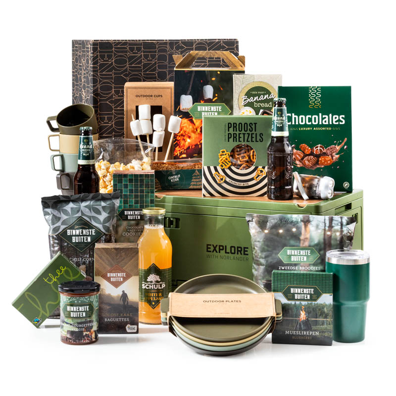 Verras iemand met dit veelzijdige kerstpakket vol praktische outdoor-items én verschillende lekkernijen. Dit pakket combineert gemak en beleving, ideaal voor wie houdt van kamperen, picknicken of gezelligheid met een stoer randje. De groene opbergkrat is een bijzonder handig cadeau voor thuis, op vakantie, in de jongenskamer, noem maar op. Daarbij de outdoor bekers, borden en de vacu?m beker en je bent klaar om op pad te gaan! Vergeet niet wat te snacken mee te nemen.